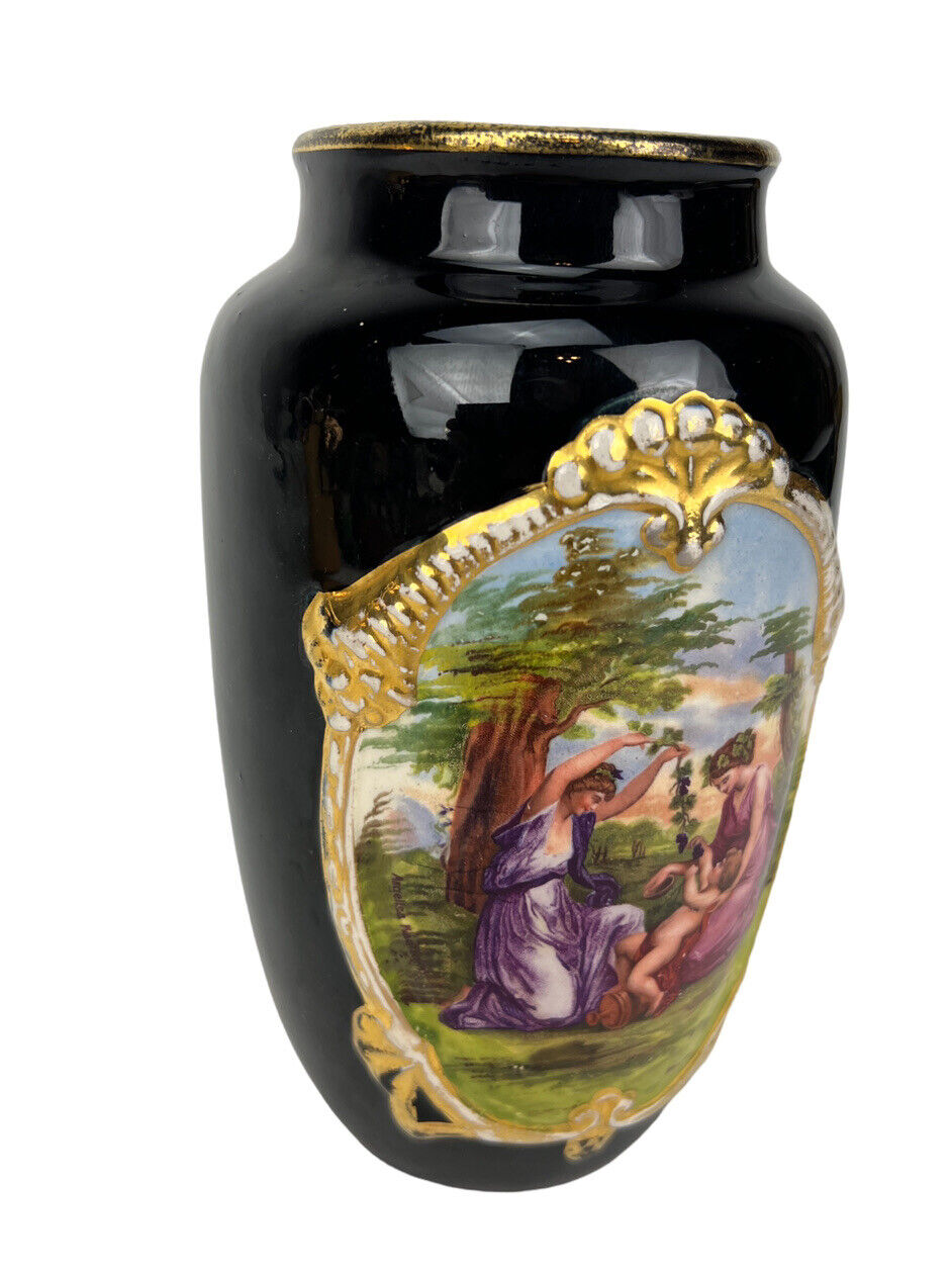 Antique JS Josef Strnact ANGELICA KAUFFMAN Portrait Vase Cobalt Blue W/ Painting