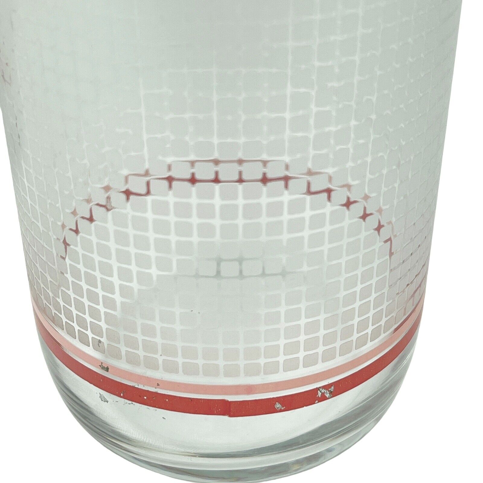 Vintage LIBBEY 16oz Drinking Glass SET 3 Pink White Printed Grid MODERN DESIGN